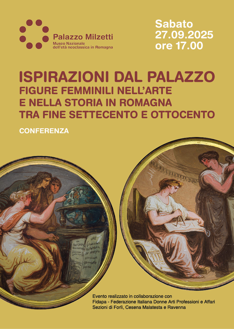 Sabato 27 settembre GIORNATE EUROPEE DEL PATRIMONIO MIRABILI RELAZIONI Apertura 9.00 – 18.30 Ore 17.00 Ispirazioni dal Palazzo. Figure femminili nell’arte e nella storia in Romagna tra fine Settecento e Ottocento Conferenza a cura di Jole Di Gregorio, Daniela Poggiali, Raffaella Candoli, Raffaella Sintoni per FIDAPA – Federazione Italiana Donne Arti professioni e Affari di Forlì […]